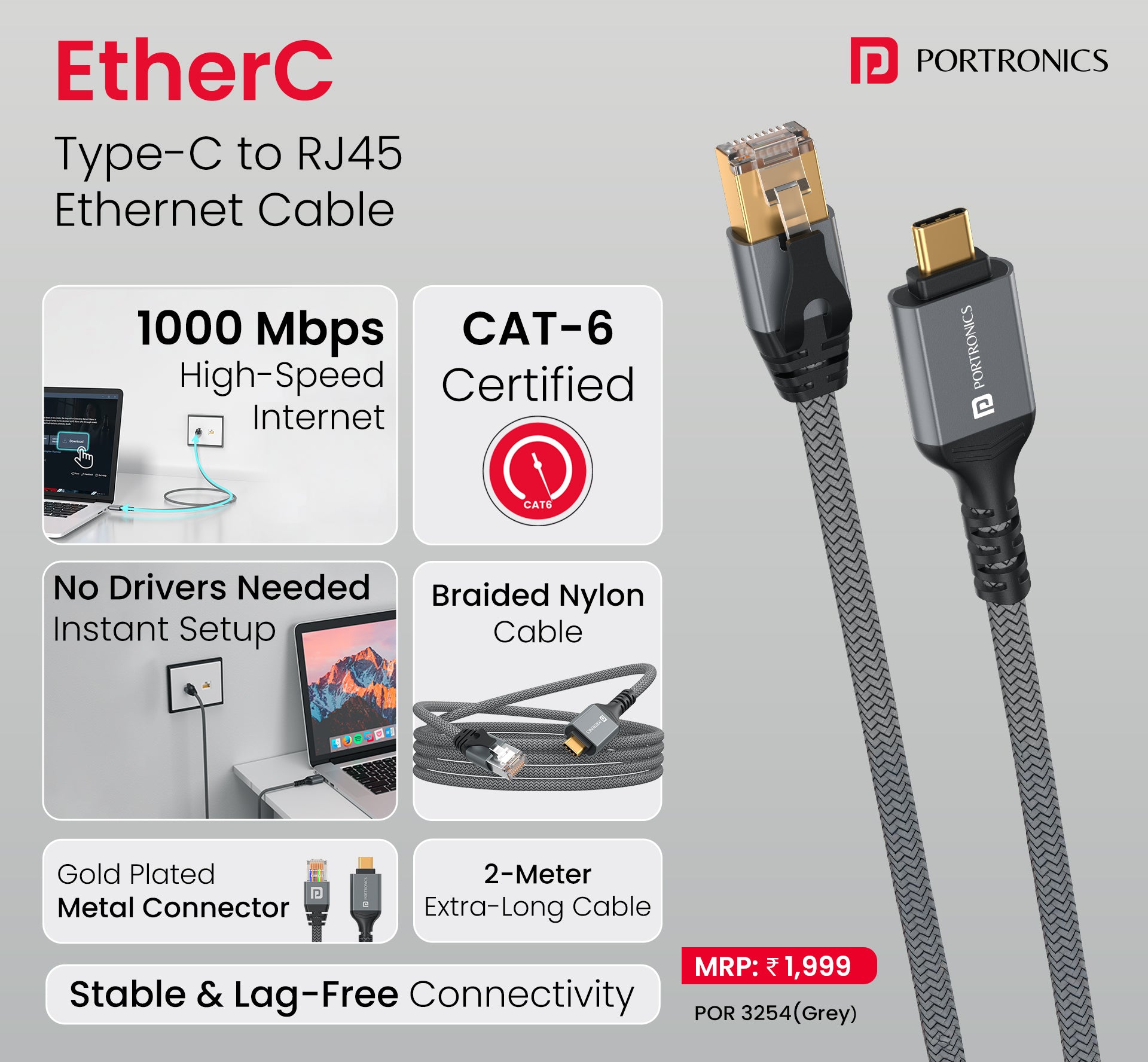 Cat6 Certified Ethernet Cable | 1000 Mbps Speed | Gold Plated Connectors | Nylon Braided | 2 Meters Long | Compatible with Laptops, MacBook, iPad & More