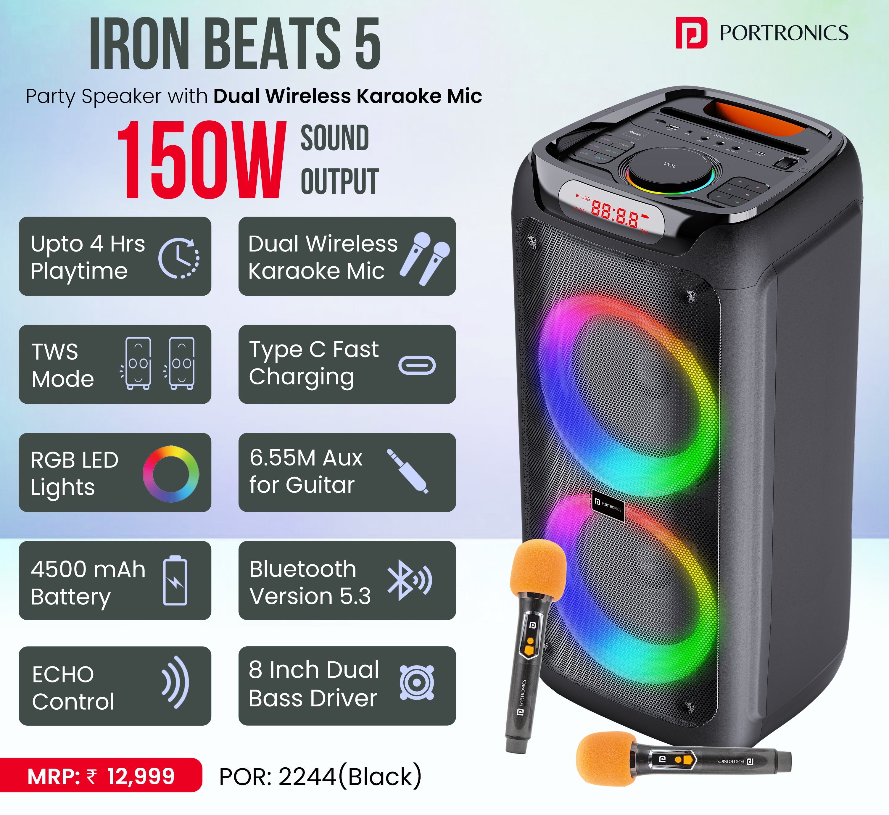 Dual Karaoke Mic | Dual Bass Driver | Upto 4 Hours Playtime | Bluetooth Version 5.3