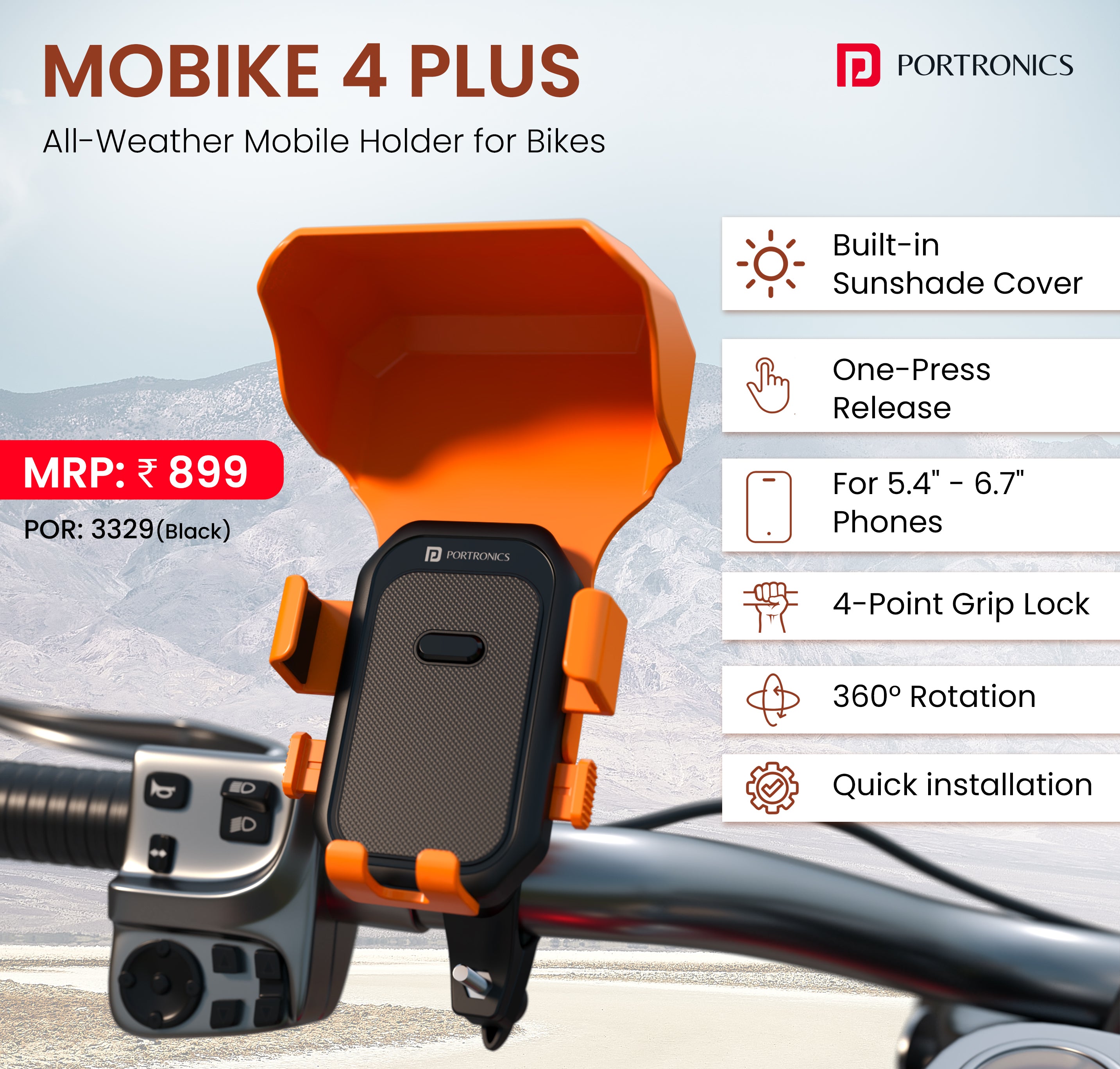 360° Rotatable Bike Mobile Holder | Handlebar Mount | 4-Point Grip Lock | Fits 5.4-6.7 Inch Smartphones | For Maps & Navigation