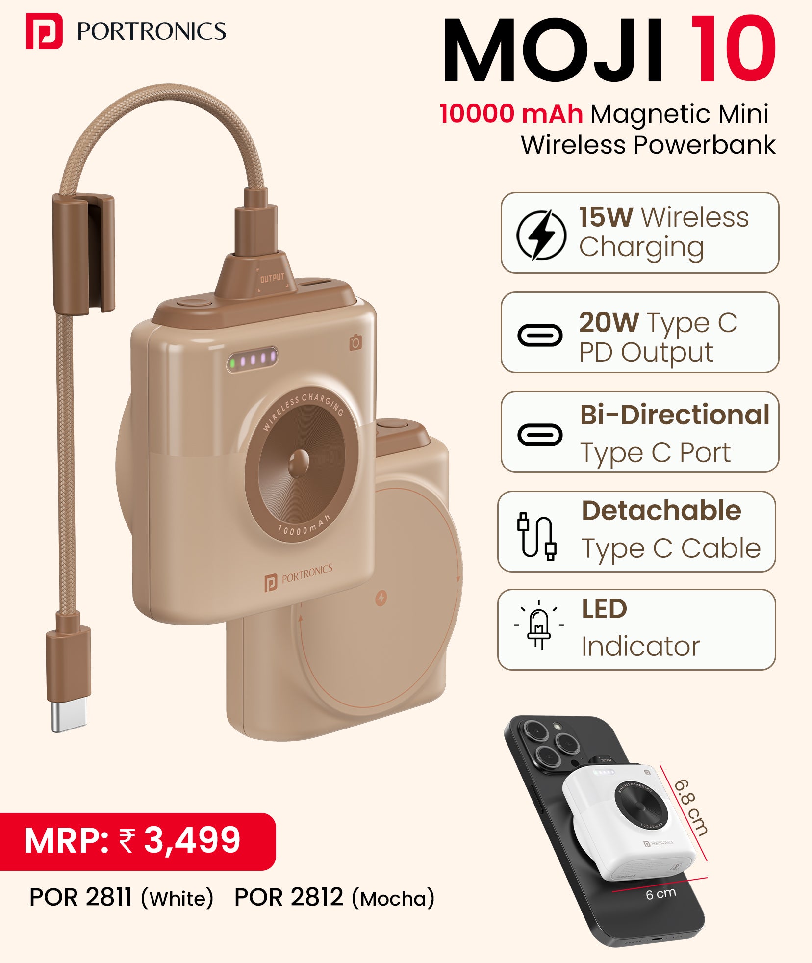 10000mAh mini Powerbank | Detachable Type C Cable | LED Indicator | 20W Wired Output