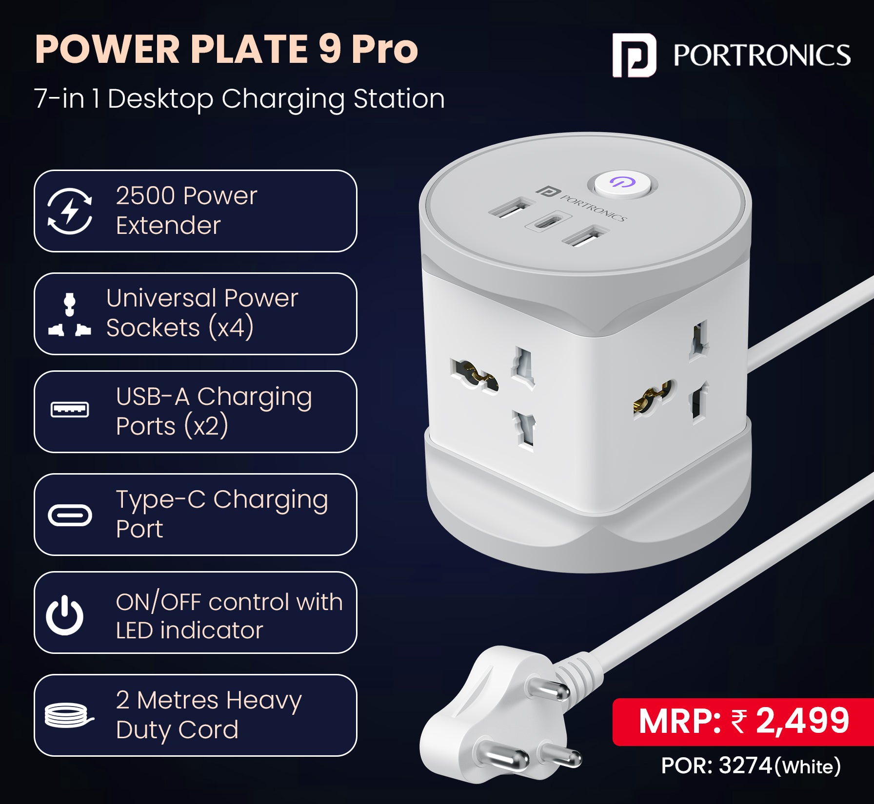 7-in-1 Power Extender | 4x Universal Sockets | 2x USB-A | Type-C Port | 2M Cord | Space-Saving with ON/OFF Switch