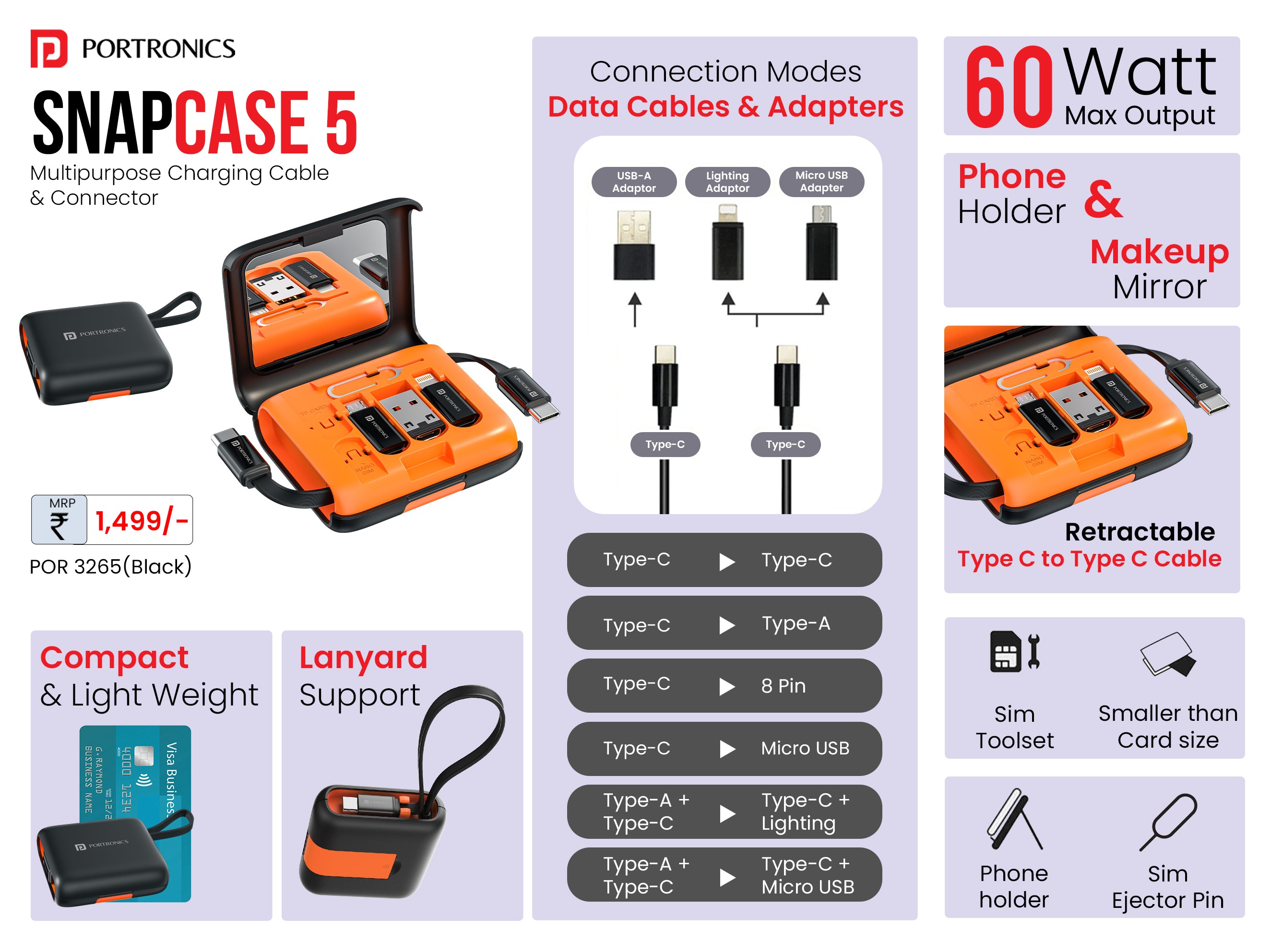 8 Pin/USB-A Connector | Sim Injector Pin | SD Card / Sim Card Slot | 60W Max Output
