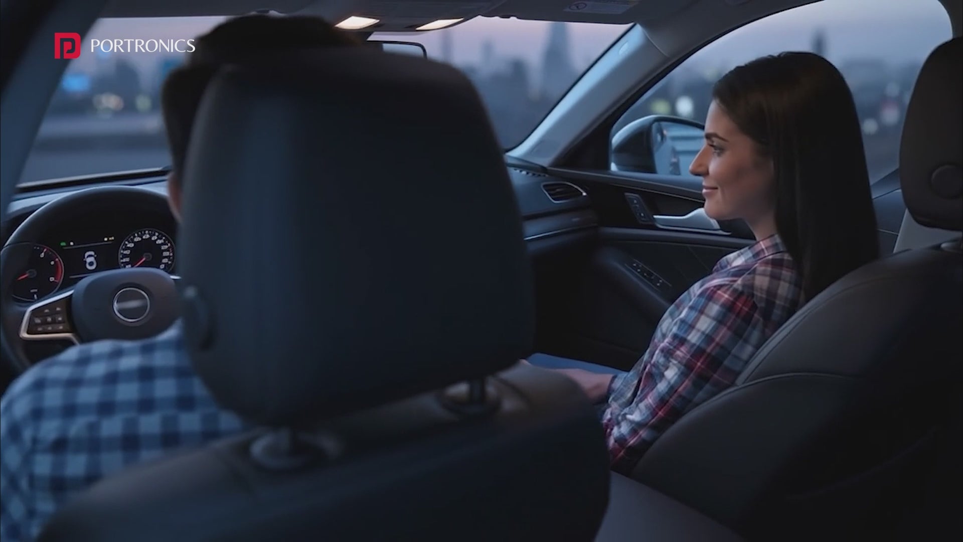 Portronics Tune Prime mounted on car dashboard showing wireless CarPlay adapter India with Qualcomm Snapdragon 662 chipset, 4GB RAM, 64GB storage and USB powered wireless Android Auto adapter for car